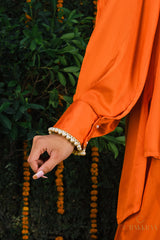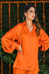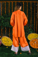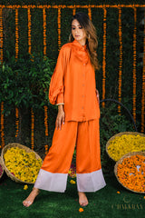 Stunning set made out of pure cotton, adorned with pearl buttons and lace at the cuff, Chakkraa Amber set is paired with Amber loose pants finished with organza giving it an extra oomph.