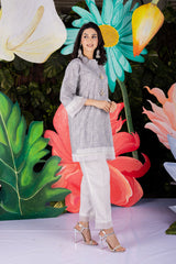 Ash Kurta Set styled in cool easy cotton fabric is elegantly accessorised to make heads turn while you walk.