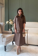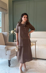 Effortlessly elegant and consciously crafted, this brown linen co-ord set features a classic round-neck shirt with half sleeves and a midi-length skirt. Made from 100% European organic linen, this breathable and sustainable co-ord is perfect for summer outfits, resort wear, or elevated everyday fashion. Style it for brunch, night out, vacations, or casual luxury days out.
