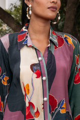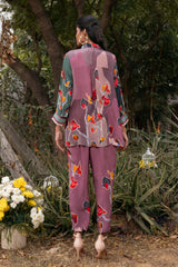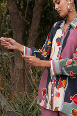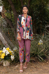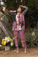 Introducing the "Grapevine Garden Co-ord Set": This charming ensemble showcases a floral print in hues of grape, green and navy, evoking the beauty of a lush garden in full bloom. The top features color detailing and contrasting sleeves, adding a vibrant touch to the design. Paired with straight floral pants, crafted for comfort and style, this ensemble offers a versatile and chic look. Perfect for a daytime garden party or a casual outing, the Grapevine Garden Co-ord Set exudes elegance and sophistication with its vibrant floral print and chic silhouette.