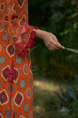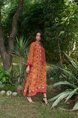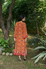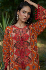 Step into effortless elegance with Gulnaar from our Nayaab collection. Crafted in breathable natural crepe and paired with a pure cotton slip, this kaftan features a striking fusion of traditional motifs in rich rust and crimson tones. Ideal for festive brunches , night outs or intimate gatherings, Gulnaar brings comfort and charm together in one timeless silhouette.