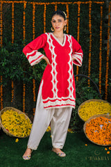 Beautiful velvet kurta set adorned with stunning lace & mirror work detailing . Chakkraa Inayat Kurta is best paired with Inayat pants & is the perfect festive wear you are looking for.