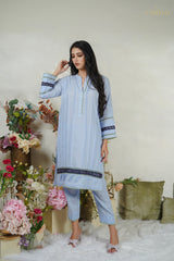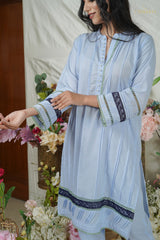 Beautiful cotton kurta adorned with beautiful laces , pintuck design & pearl buttons - Chakkraa Jal Kurta Set is a super breathable & stunning outfit . Best paired with the ever stunning Chakkraa Jal pants & lovely hand painted Chakkraa Jal Dupatta embellished with the prettiest lace.