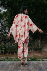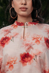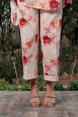 Poppy Co-ord Set designed in pure linen fabric, printed in the shades of red with a perfect contemporary cut and pearl buttons makes the garment a classy one to match your style.