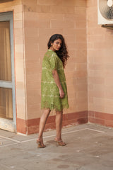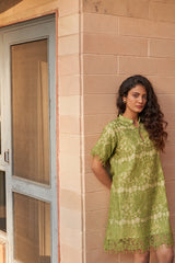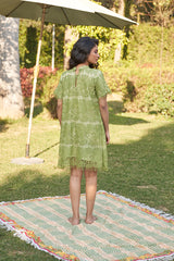 A versatile shift dress crafted in soft cotton lace with pure cotton lining, designed to be worn both ways—front or back. Featuring a flattering relaxed silhouette and keyhole detailing, it’s a perfect pick for effortless day-to-evening transitions.