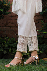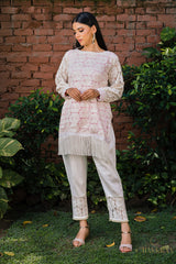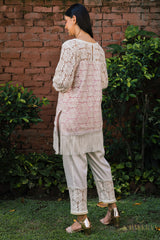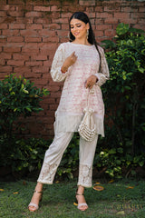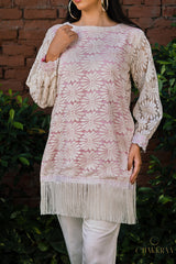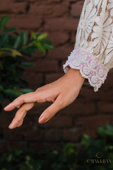 Beautiful pure cotton lace Kurta set lined with pink cotton fabric & embellished with stunning white laces & pearl detailing . Chakkraa Noor Co-ord Set will sort you out for all your outings.