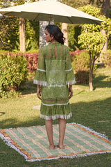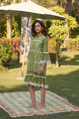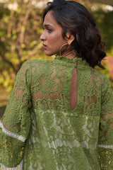 Elevate your daytime style with this dress in soft cotton lace, featuring pure cotton lining for breathability. Accented with playful fringe and lace inserts, it brings a boho-chic vibe perfect for brunches, garden parties, or holiday getaways.