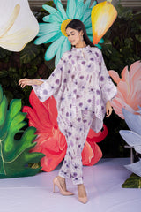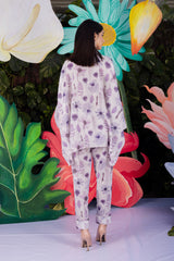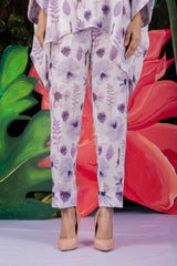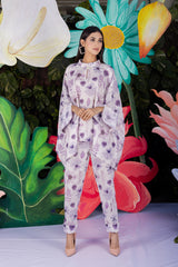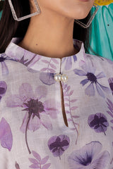 Pansy Co-ord Set designed in pure linen fabric, printed in the shades of lilac with a perfect contemporary cut and pearl buttons makes the garment a classy one to match your style.