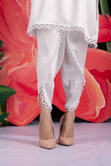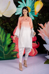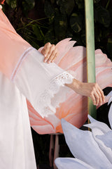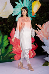 Peony Kurta Set styled in undoubted combination and shades of peach and cream Italian Cotton , adorned with delicate laces is a piece to own this Summer