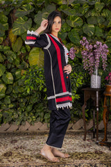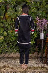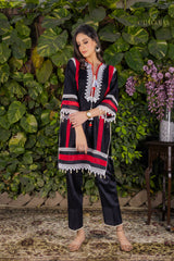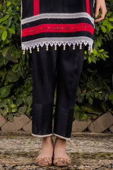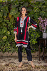 Beautiful pure cotton Kurta set embellished with stunning coloured lace & pearl detailing . Chakkraa Saanjh Kurta with pants is the perfect festive wear you are looking for.