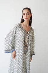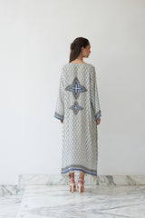 Ziya is a serene expression of effortless luxury. Tailored in natural crepe with a cotton slip inside, it features intricate mirror accents and heritage-inspired blue borders. The striking back motif adds a hint of drama, making it a luminous choice for festive brunches and elegant evenings. From our Nayaab collection — where every piece tells a story.