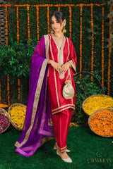 Beautiful purple coloured dupatta embellished with stunning laces Chakkraa Heer Dupatta is best paired with Heer Kurta Set.