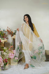 • Beautifully hand painted Chakkraa Kamal Dupatta will make any outfit stand out. Adorned with laces, this dupatta is a neutral pick with any of your outfits.