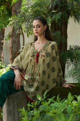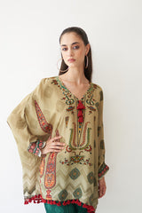 A vibrant ode to tradition, Gulnaar features a relaxed mustard tunic with heritage-inspired motifs and handcrafted tassel detailing. Paired with slate blue pants adorned in dainty floral bootis and contrast borders, this set exudes earthy elegance and playful charm. An effortless pick for festive luncheons, mehendi soirées, or artful everyday wear.