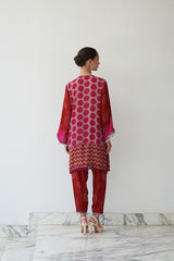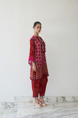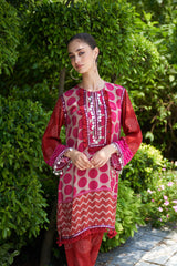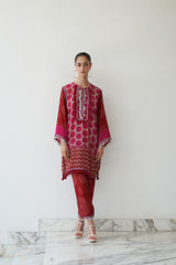 With its vivid redish pink tones, playful patterns, and intricate mirror accents, Ruhani brings together tradition and vibrance on the softness of natural crepe. A standout from the Nayaab collection, it’s designed for the woman who radiates joy with every step.