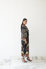 Unveil timeless charm with Zehra from our Nayaab collection. This stunning kaftan, crafted in flowy natural crepe and lined with a breathable cotton slip, features bold botanical prints against a midnight black canvas. With intricate detailing on the neckline and a play of rich hues & green tassels , Zehra transitions seamlessly from festive soirées to elegant evenings, embodying grace in every thread.