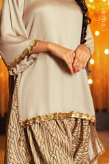 This kurta is best paired with pleated tulip pants adorned with gota detailing. Super comfortable and yet so formal best paired with beautifully pleated euphoria tulip pants.