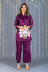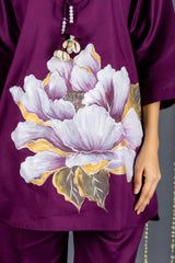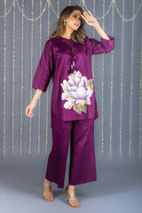 Vino co-ord set is curated out of pure cotton fabric in a mesmerising gorgeously deep wine colour. It is Handpainted , giving the outfit a 3D effect and making it apt to leave a statement