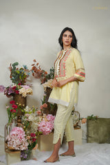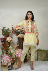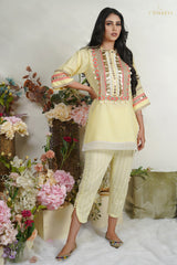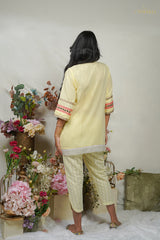 • Beautiful lemon yellow fine cotton adorned with eye catching laces and shells . Chakkraa Seher Kurta is what you need to make your days brighter and evenings lovelier. Best paired with Seher Pants.
