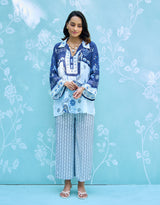 Command attention in this vibrant, contemporary co-ord set. Expertly crafted from ultra-soft, summer-friendly natural crepe, the ensemble features a striking, artisan-inspired print that perfectly balances bold artistry with relaxed, breathable comfort. Ideal for effortless seasonal style.