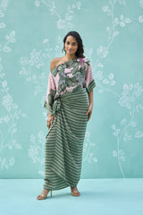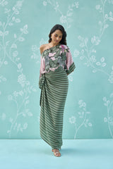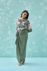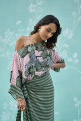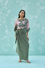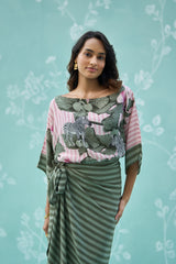 Elevate your resort-chic aesthetic with this artisanal ensemble, meticulously crafted from premium natural crepe. Featuring a sophisticated fusion of organic zebra-inspired motifs and refined diagonal stripes, this silhouette offers a graceful, draped fit which can be achieved with the tie around skirt. Designed for the modern muse, it perfectly balances effortless movement with an air of understated, contemporary luxury.