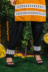 Made out of pure cotton and embellished with beautiful lace, it's super comfortable and stylish. Gazal black harem pants are best paired with Gazal velvet kurta.
